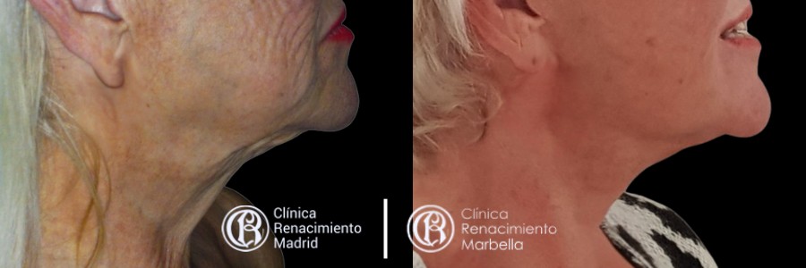 Puede mejorar y frenar los signos más visibles, mediante el tensado de las estructuras más profundas-músculos-, y el estiramiento y readaptación de la piel del cuello y cara, eliminando la piel sobrante. Conseguirás un aspecto rejuvenecido.